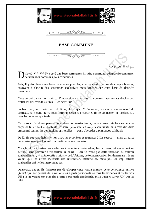 « D’abord ALLAH ﷻ a créé une base commune : histoire commune, géographie commune, personnages communs, lois communes…