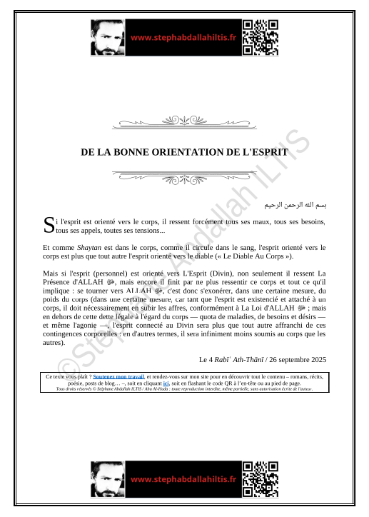 Lien de téléchargement : DE LA BONNE ORIENTATION DE L’ESPRIT.