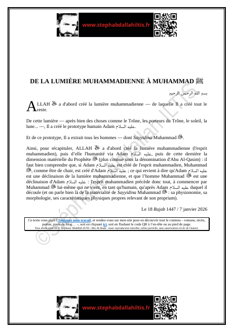 Lien de téléchargement : DE LA LUMIÈRE MUHAMMADIENNE À MUHAMMAD ﷺ.