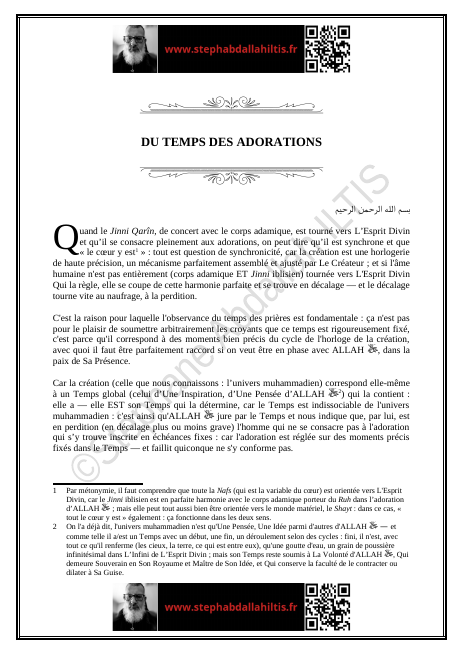 « Quand le Jinni Qarîn, de concert avec le corps adamique, est tourné vers L’Esprit Divin et qu’il se consacre pleinement aux adorations, on peut dire qu’il est synchrone et que « le cœur y est »… »