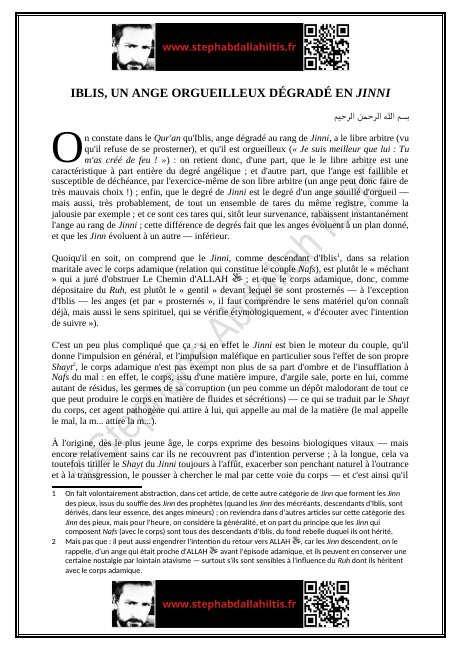 Lien de téléchargement : IBLIS, UN ANGE ORGUEILLEUX DÉGRADÉ EN JINNI.