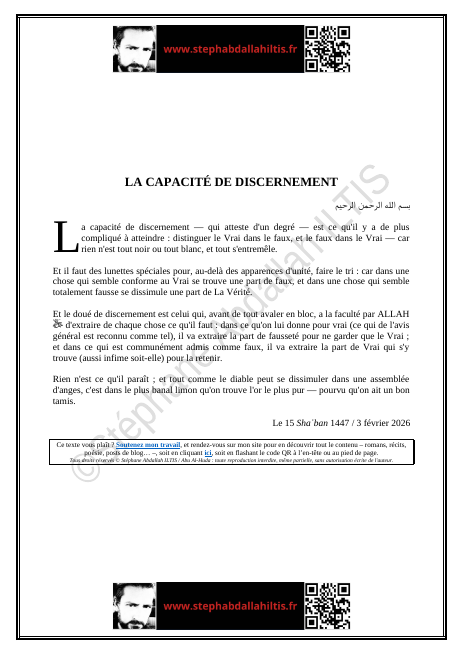 Lien de téléchargement : LA CAPACITÉ DE DISCERNEMENT.