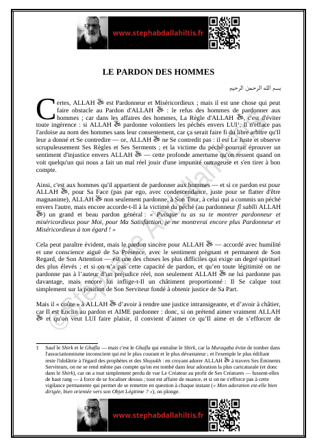 « Certes, ALLAH ﷻ est Pardonneur et Miséricordieux ; mais il est une chose qui peut faire obstacle au Pardon d’ALLAH ﷻ : le refus des hommes de pardonner aux hommes… »