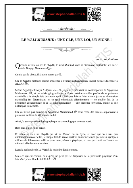 Lien de téléchargement : LE WALÎ MURSHID : UNE CLÉ, UNE LOI, UN SIGNE !