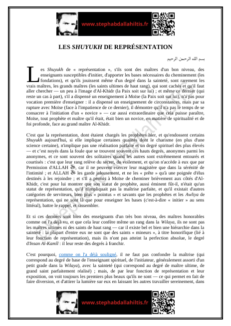 LES SHUYUKH DE REPRÉSENTATION (PDF)