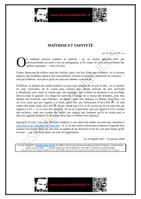« On confond souvent maîtrise et sainteté : or, un maître spirituel n’est pas nécessairement un saint (c’est un enseignant), et les saints ne sont pas forcément des maîtres spirituels — loin s’en faut… »