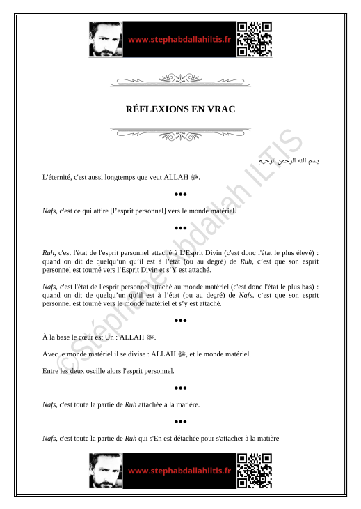 Étiquettes : ALLAH ﷻ, Cœur, Divin, Esprit, Éternité, Matière, Monde matériel, Muhammadien(ne), Nafs, Ruh