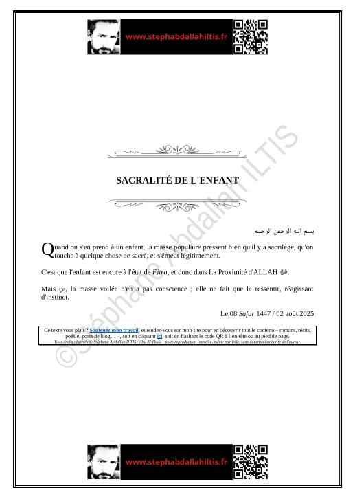 Lien de téléchargement : SACRALITÉ DE L’ENFANT.
