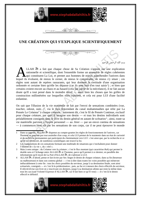 « ALLAH ﷻ a fait que chaque chose de Sa Création s’appuie sur une explication rationnelle et scientifique, dont l’ensemble forme un ensemble de règles cohérentes qui constituent La Loi, et permet aux hommes de mieux appréhender l’univers dans lequel ils évoluent, de mieux le cerner, de mieux le comprendre, de mieux s’y situer… »